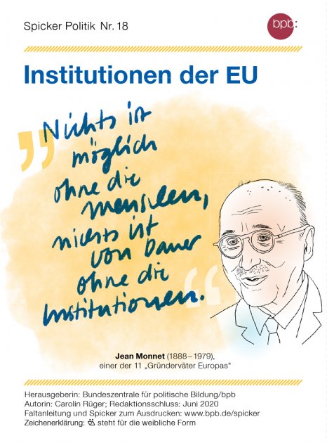 Die Europäische Union ist kompliziert. Auf diesem Spicker wird sie übersichtlich dargestellt. Eine Anleitung hilft, ein Miniheft zu bauen.